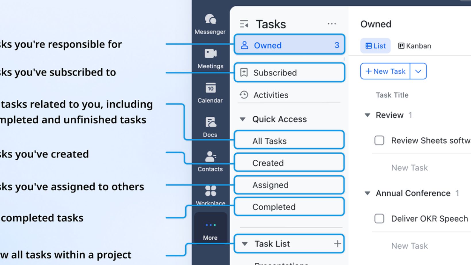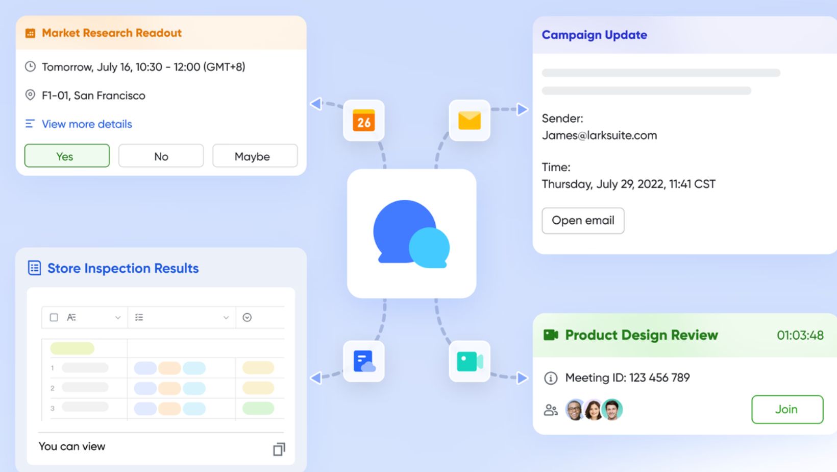 In business, having good ideas isn’t enough to get things done. You need a way to link all the parts of a project, from the first message to the last results. Lark gives businesses the tools they need to get things done faster and better. Base keeps track of items, Messenger connects discussions to directions, Tasks makes sure people are responsible, Sheets connects actions to data, Mail embeds information from outside sources, and Wiki keeps information for the future.