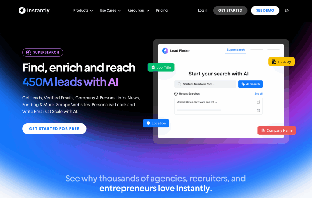 Instantly is an AI-driven platform built to help SMBs scale their sales by finding and engaging with ideal customers. Its Supersearch feature provides access to a database of over 450 million contacts, which can be enriched and used to launch automated and personalized outreach campaigns.