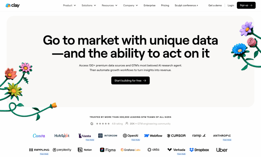 Clay is an automation platform that helps go-to-market teams build lead lists by integrating with over 100 data providers. It uses AI research agents to automate manual tasks, enrich data, and uncover insights about prospects. Clay also uses real-time intent signals to help teams time their outreach and allows for the creation of complex, conditional workflows without code, making sophisticated prospecting accessible to SMBs with smaller teams.