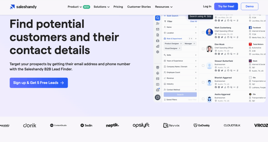 Saleshandy’s Lead Finder gives SMBs access to a massive database of over 700 million contacts and 60 million companies to find potential customers. It allows users to filter leads by a wide range of criteria, including role, industry, and company revenue. The platform is designed to streamline the outreach process by allowing users to extract leads and add them directly into sales sequences, and it can uncover personal contact details to help build deeper connections.
