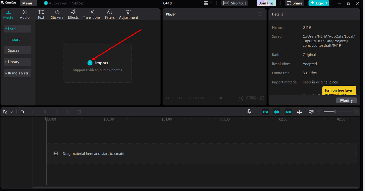 Import your video on CapCut